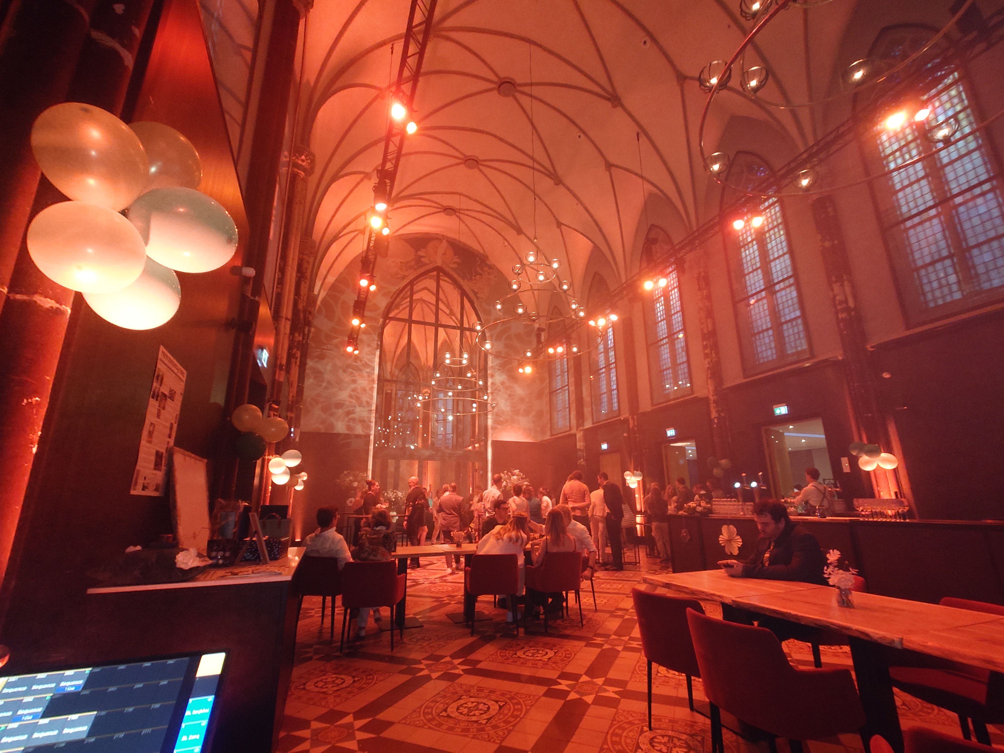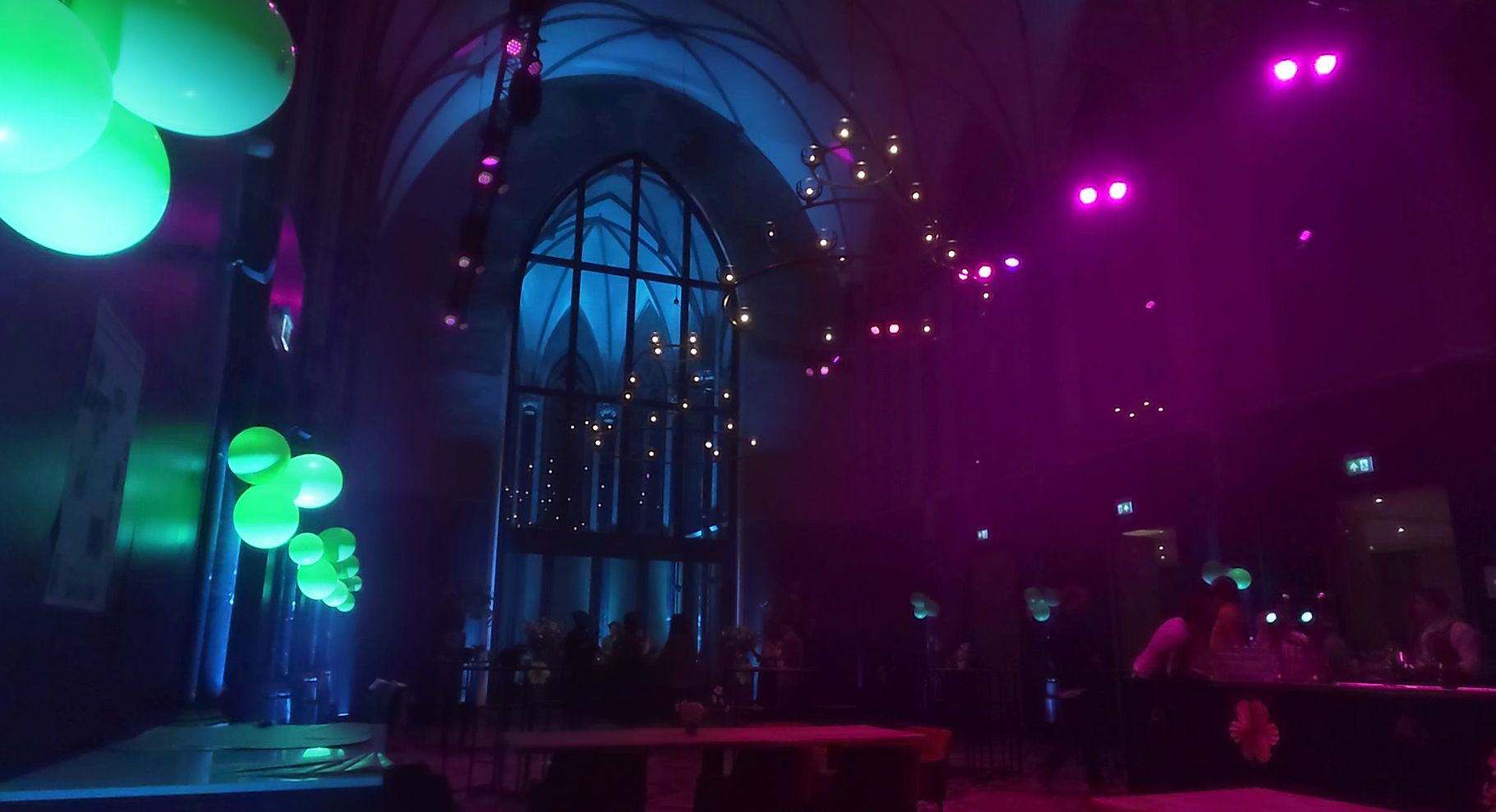 Complete technical production transforming a classical church to provide an elegant look for the wedding itself, a cozy space for the reception and a night club for the party going on into the small hours.